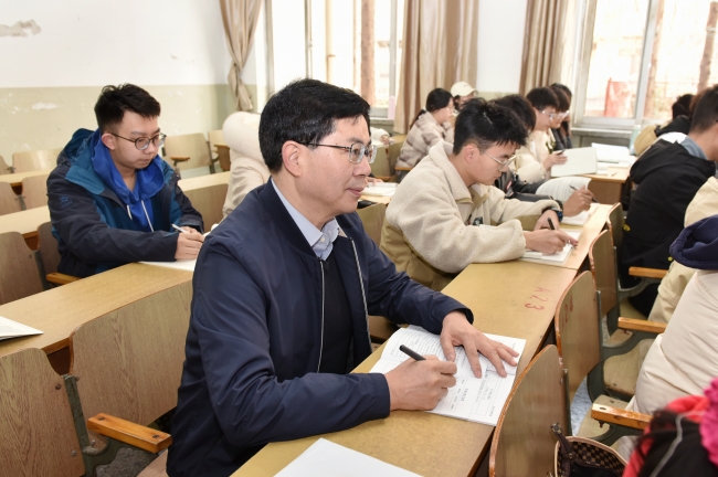 冷畅俭边听边认真记录,还不时地观察学生们听课情况。课间,冷畅俭与师生亲切交谈,对课堂教学效果和学生们课堂表现给予充分肯定,鼓励教师们要不断提升业务能力和水平,积极探索好的教学方式、方法,丰富课堂教学内容,让学生动起来、课堂活起来、课程立起来,激发学生学习主动性和自觉性,不断提高课堂教学效果,并叮嘱学生要把个人理想追求融入国家和民族事业中,珍惜大学学习机会,心无旁骛求知问学,不仅学好知识,也要学以致用,逐步增强自己分析问题、解决问题的能力,努力成长为对国家、对人民、对社会有用的人才。