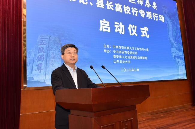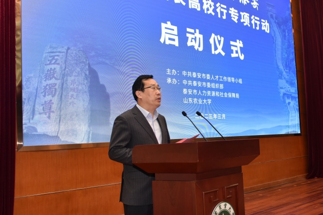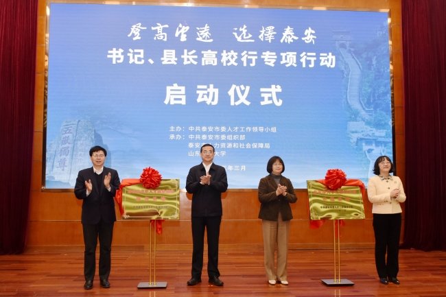 泰安市委常委、组织部部长刘泮英介绍泰安市青年人才政策和专项行动总体安排,市委常委、秘书长张颖出席,副市长马保文主持启动仪式。学校有关部门主要负责同志和部分应届毕业生代表参加活动。