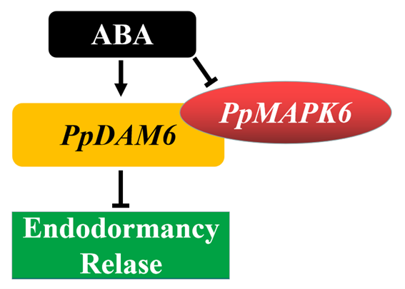 图2. PpMAPK6与PpDAM6调控桃花芽自然休眠解除的工作模式图