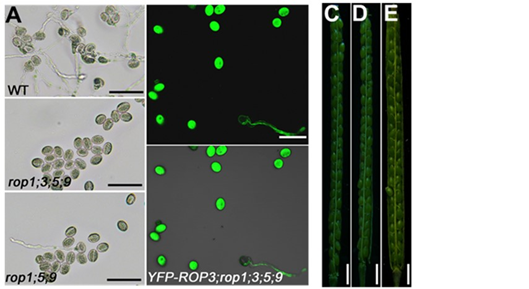 图1. rop1;3;5;9高阶突变体花粉不萌发