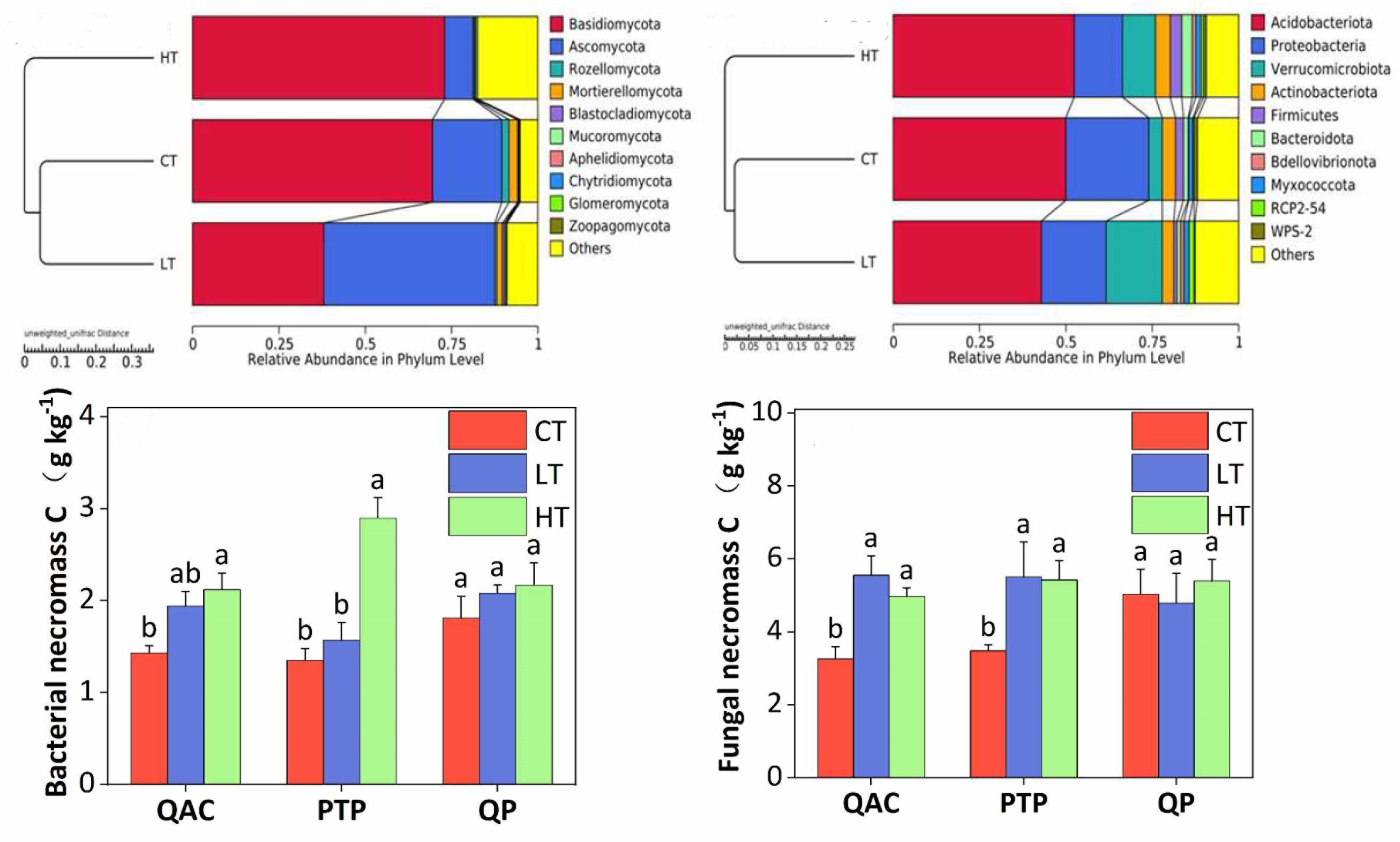 图1. 抚育间伐条件下土壤微生物群落及其残体碳变化