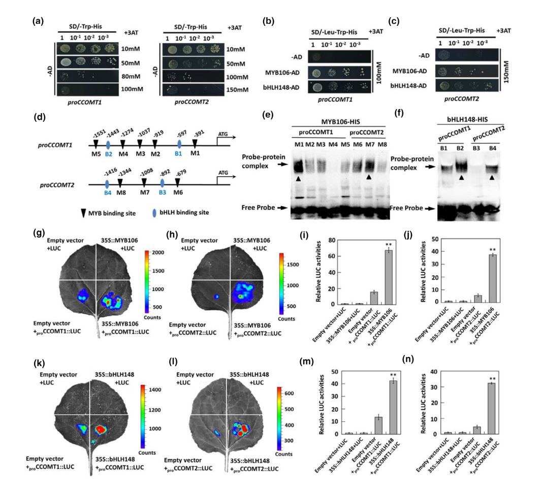 Figure 3. ZoMYB106 and ZoBHLH148 promote the activities of key enzymes ZoCCOMT1/2,in 6-gingerol synthesis
