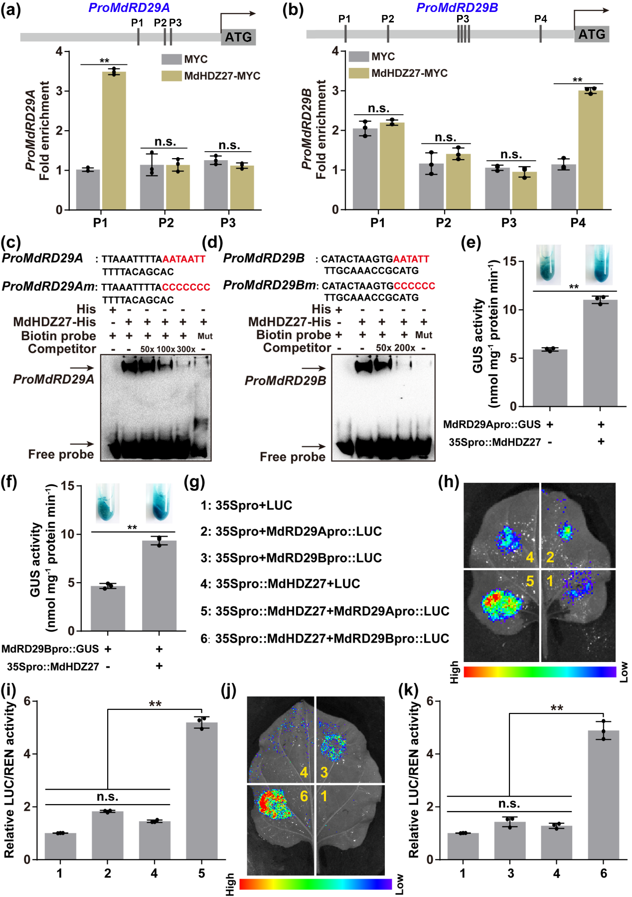 图1 MdHDZ27激活MdRD29A和MdRD29B表达