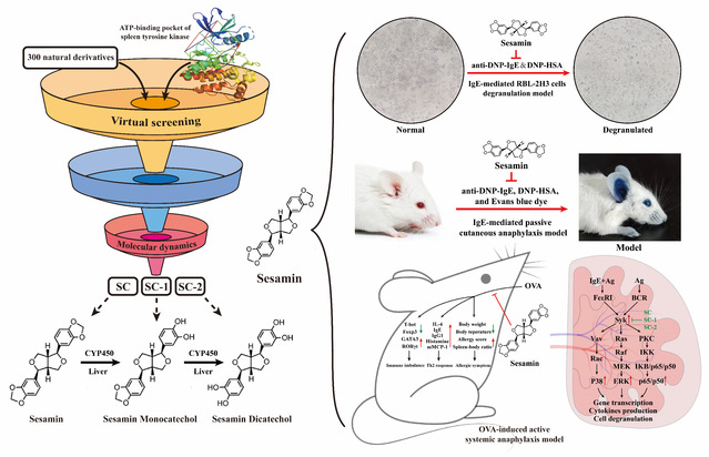 这项研究表明,芝麻素可能是一种安全有效的SYK抑制剂,能够缓解IgE介导的肥大细胞脱颗粒和食物过敏反应,在预防和缓解食物过敏方面具有广阔应用前景。