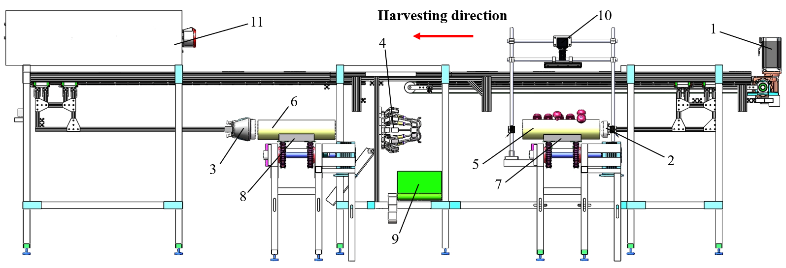 针对以上技术难题,beat365英国官方网站苑进教授团队首创了香菇菌棒选择性采收新模式,并创新设计了一种新型香菇菌棒选择性采收机,实现低损伤、高效采摘。基于提出的ReYOLO-MSM菌棒评估方法获得香菇数量、香菇大小和圆度、合格香菇占比等信息,从而评估出菌棒的生长状态。该研究构建了香菇菌棒选择性采收机,并在香菇生产工厂中进行了采摘试验。试验结果验证了新型机械化采摘模式和香菇菌棒选择性采收机,可提高采摘效率,具有很强的有效性和可行性,研究团队以此为基础设计了适用于香菇生产线的采收装备。该技术有望为提高香菇采摘环节的工厂化生产提供重要核心装备,为打造食用菌智慧工厂化生产和绿色发展提供了beat365英国官方网站方案,对国际香菇产业发展方向产生重要引领性作用。