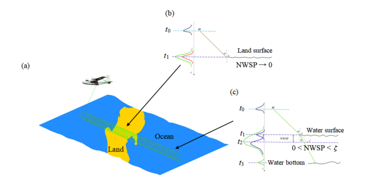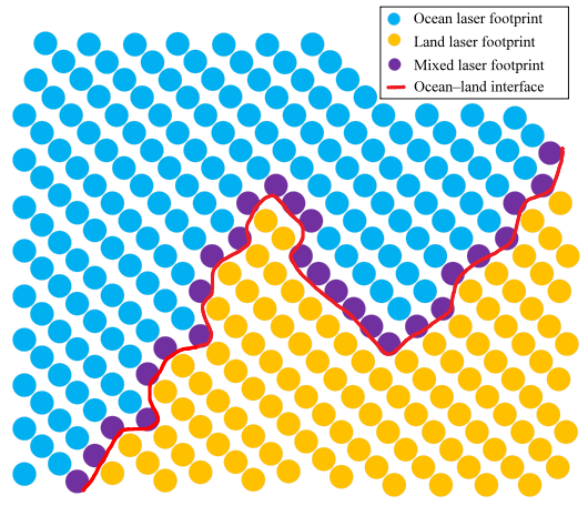 由于水面不确定性,机载激光雷达中使用的绿激光无法准确探测水面,所测点穿透到近水面一定深度处,即绿激光NWSP。绿激光NWSP不利于高精度测深,然而,它可用于海洋/陆地交界面(OLI)提取。本研究提出了一种基于绿激光NWSP的新型海陆识别和OLI提取方法。首先,计算不同绿激光通道的NWSP并进行截尾平均,以获得每个激光足迹的鲁棒NWSP。其次,基于陆地和海洋区域NWSP不同特性,提出了一种基于NWSP的新型海陆识别器。然后,使用基于密度的空间聚类算法来识别和改正误分类点,并连接陆地边界点形成OLI。最后,使用Optech CZMIL采集的原始数据集验证了所提方法的有效性和正确性。本研究所提出的绿激光NWSP方法为OLI提取提供了一种新思路。