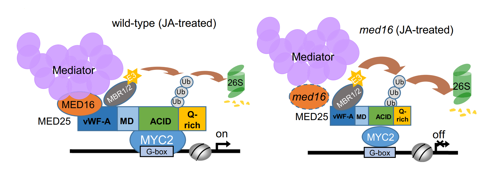图1 MED16–MBR模块通过调控MED25稳定性进而精细调节茉莉酸信号强度