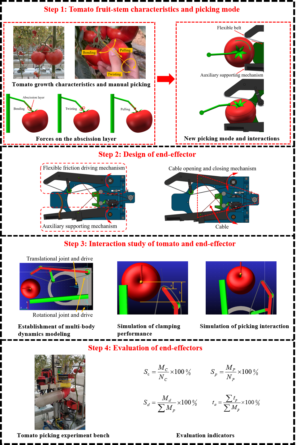 近日,机电学院苑进教授团队在《Computers and Electronics in Agriculture》,发表题为“Design and interaction dynamics analysis of a novel hybrid bending-twisting-pulling end-effector for robotic tomato picking”的最新研究成果。博士研究生方家明为论文第一作者,机电学院苑进教授和刘雪美教授为共同通讯作者,辛振波副教授、戴念祖博士生参与课题研究,beat365为唯一通讯单位。