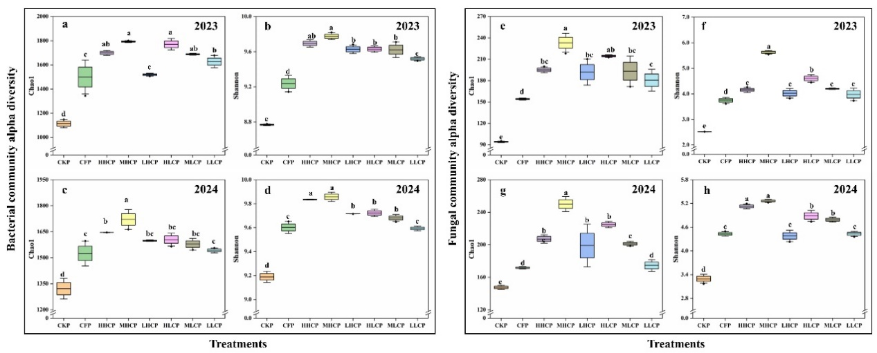 本研究通过两年田间试验(2023-2024年),结合16S rRNA和ITS测序技术和结构方程模型(SEM)解析了施用控释磷肥对土壤微生物、土壤氮-磷循环酶活性、土壤肥力和大豆生产力的影响及其相互作用关系。结果表明,施用控释磷肥增加了土壤细菌和真菌群落多样性及有益微生物(Bradyrhizobium,Lysobacter,Sphingomonas和Flavisolibacter)的相对丰度,提高了土壤氮、磷循环酶的活性。在土壤微生物和养分循环酶的作用下,土壤肥力和大豆生产力得到提高。其中,大豆产量提高1.7%~12.9%,大豆磷肥利用效率提高1.1~22.5个百分点。研究结果为磷肥高效利用和大豆可持续生产提供了理论依据和积极贡献。