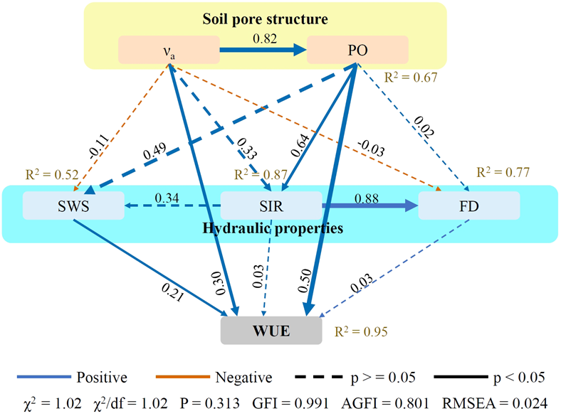 作为我国冬小麦主产区,华北平原正面临水资源短缺的挑战。长期深松具有增产和节水作用,但基于土壤孔隙网络的水力特性及其影响水分利用效率的机制仍缺乏系统研究。本研究基于长期定位试验,探究了长期深松对冬小麦农田土壤孔隙结构、水力特性以及水分利用效率的影响,并通过相关性分析与结构方程模型,探究了三者间的关系。研究结果表明,与旋耕处理相比,深松显著优化土壤孔隙结构、改善土壤水力特性和提高水分利用效率。此外,深松主要通过直接增加土壤大孔隙比和孔隙连通性或间接增加土壤储水量实现水分高效利用。研究结果可为华北平原冬小麦高效用水提供理论依据。