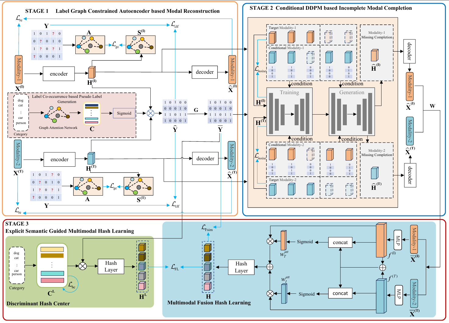 针对上述挑战,研究团队提出了LaDiff-BIMH(Label-guided Diffusion Bi-Incomplete Multi-modal Hashing)框架。这是一种新的显式语义引导的双不完全多模态哈希框架,并引入标签共现性约束与标签图结构约束,有效提升了生成哈希码的判别性。大量实验表明,LaDiff-BIMH优于最先进的多模态哈希方法,特别是在较高的缺失率情况下。