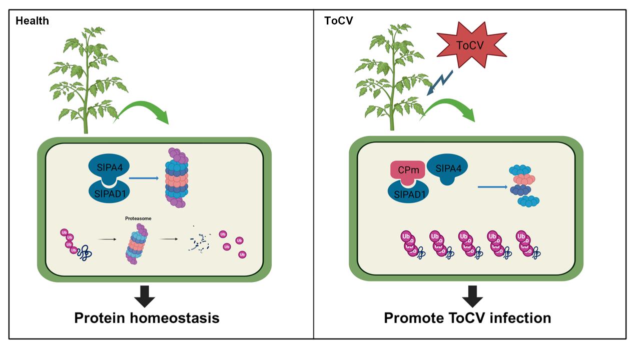 该研究首次揭示ToCV CPm通过干扰宿主蛋白酶体功能来增强病毒感染的策略,不仅为理解植物-病毒互作提供了新视角,也为未来培育抗病番茄奠定了理论基础。