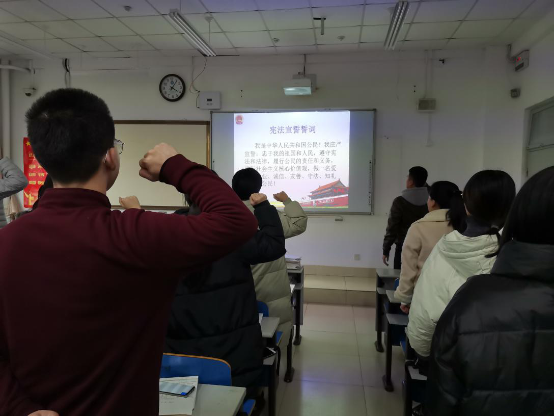 为深入开展尊崇宪法、学习宪法、维护宪法、运用宪法的教育活动,迎接全国第六个国家宪法日,12月4日,澳门信誉最好十大平台本科学生党支部在J1-114举行“我与宪法”主题党日活动。澳门信誉最好十大平台全体辅导员与本科生党员参加本次活动。在诸葛长华老师带领下,全体本科生党员进行宪法宣誓。通过本次主题党日活动,普及了宪法知识,强化了法律意识,使宪法意识更加深入人心,有利于推动广大学生成为社会主义法治的忠实崇尚者、自觉遵守者、坚定捍卫者。(通讯员:诸葛长华)