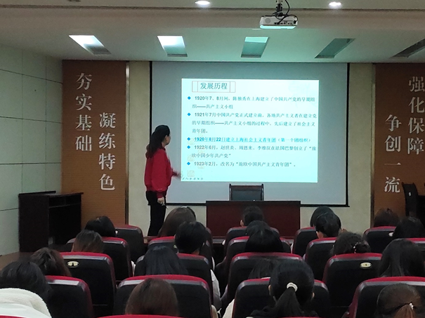 3月16日晚,澳门信誉最好十大平台“小葵花”系列团课开讲。本次课程由学院团委书记易凡担任主讲,各班级团支部书记到场聆听。此次团课的主要内容是中国共产党和中国共青团的历史。首先,易凡老师用半个小时的时间,带领各团支部书记回顾了中国共产党自成立以来至今的100年光辉历史。随后,沿着党史的脉络,她详细介绍了中国共青团的发展历程,并梳理了历次团代会的开展情况,强调了中国共青团的性质,要求广大团支部书记要熟知团的历史,在实际工作中认真贯彻上级团组织的各项方针政策,推进落实相关工作,进一步加强对青年团员的思想引领。课程最后,易凡老师安排了团支部近期评优评先的相关工作。