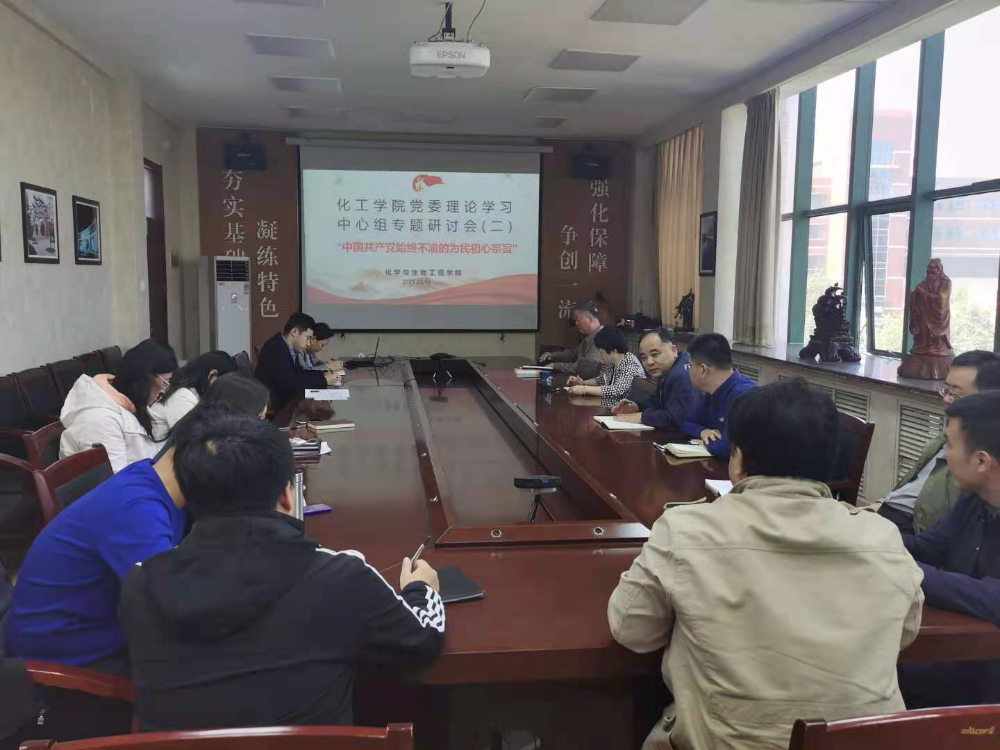 5月18日,澳门信誉最好十大平台党委理论学习中心组开展党史学习教育专题学习研讨会,学院领导班子成员、各党支部书记、各科室负责人参加学习研讨会。学习研讨会由党委书记窦存增主持。