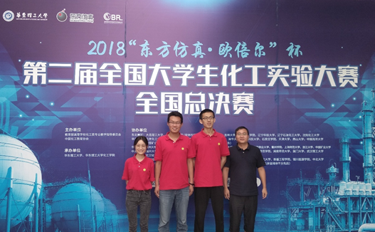8月12-14日,由教育部高等学校化工类专业教学指导委员会、中国化工教育协会联合主办,华东理工大学承办的2018“东方仿真•欧倍尔”杯第二届全国大学生化工实验大赛全国总决赛在华东理工大学奉贤校区成功举行。澳门十大信誉网赌大全选派的张辛铖、郭祯和张涛(化学工程与工艺2015)三名同学组成的代表队凭借扎实的化工专业基础和稳定的发挥获得此次总决赛全国二等奖,张治山、徐冬梅和高军担任指导教师。