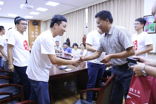 学院为每位校友准备了学校的校徽作为纪念,校友们向学院赠送了纪念品。