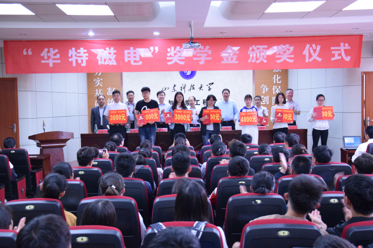 会上,澳门信誉最好十大平台党委书记李垂文宣读表彰决定,张晚佳等14名同学获得了“华特磁电”奖学金。澳门信誉最好十大平台院长吕宪俊向山东华特磁电科技股份有限公司长期以来对学院的支持及帮助表示感谢,对公司领导支持教育、回馈的社会的善举表示崇高敬意。他希望同学们志存高远,不断超越自我,常怀感恩之心,用优异的成绩回馈社会。矿物加工工程2014级张文进代表获奖学生上台发言。山东华特磁电科技股份有限公司董事长王兆连对获奖同学表示祝贺,他说企业的发展离不开澳门十大信誉网赌大全领导、相关学科老师的支持和帮助,感谢学校向企业输送了一大批高质量人才。他介绍了公司发展历程及取得的系列成果,表示企业会继续承担起社会责任,在新旧动能转换中发挥排头兵作用。他诚挚邀请与会领导、师生到公司参观交流,近距离地了解公司。