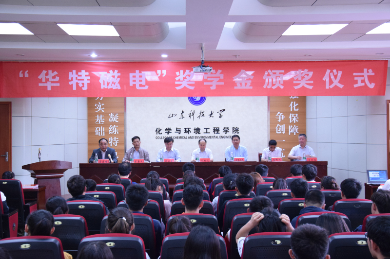 5月14日下午,化学与环境工程学院在J2报告厅隆重召开澳门十大信誉网赌大全“华特磁电”奖学金颁奖大会暨选矿装备新技术讲座。山东华特磁电科技股份有限公司董事长、高级工程师王兆连,澳门十大信誉网赌大全学生工作部部长诸葛福民,合作发展处处长吴正龙,山东华特磁电科技股份有限公司欧洲分公司总经理助理安峰文,澳门信誉最好十大平台党委书记李垂文、院长吕完俊出席会议。澳门信誉最好十大平台矿物加工工程系教师、研究生、本科生代表参加会议并聆听了报告。会议由学院党委副书记窦存增主持。