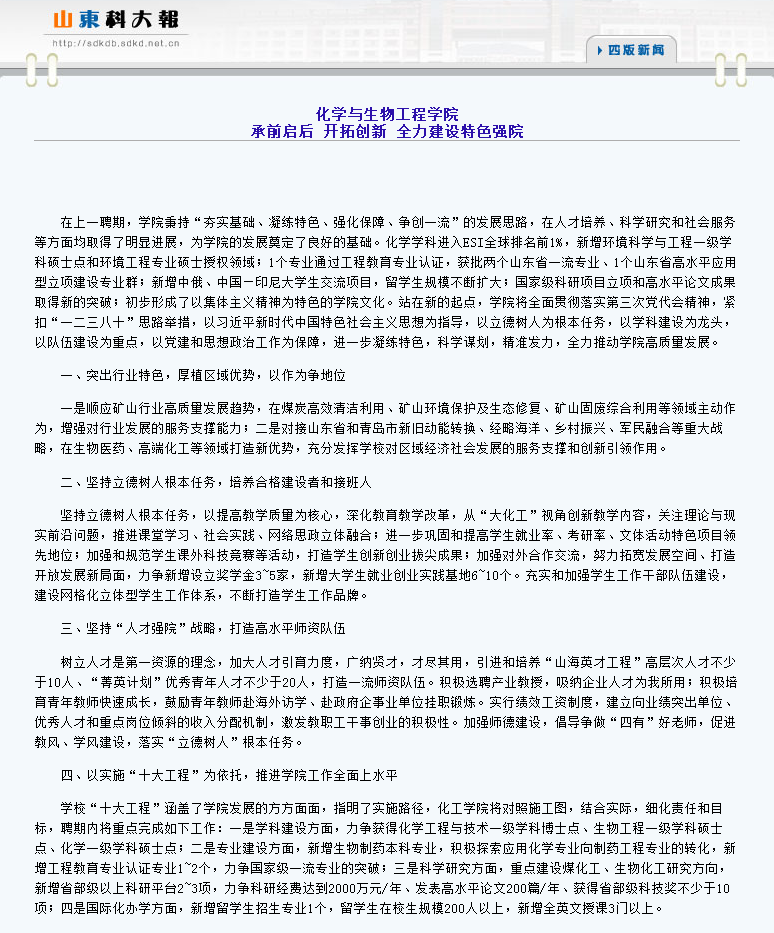 近日,《山东科大报》、学校网站刊载澳门信誉发展目标文章,原文如下: