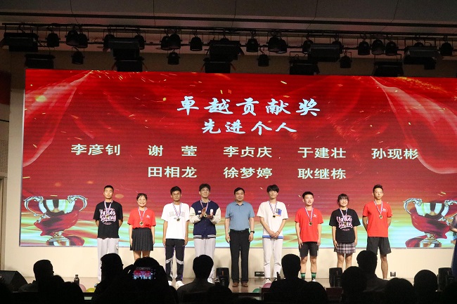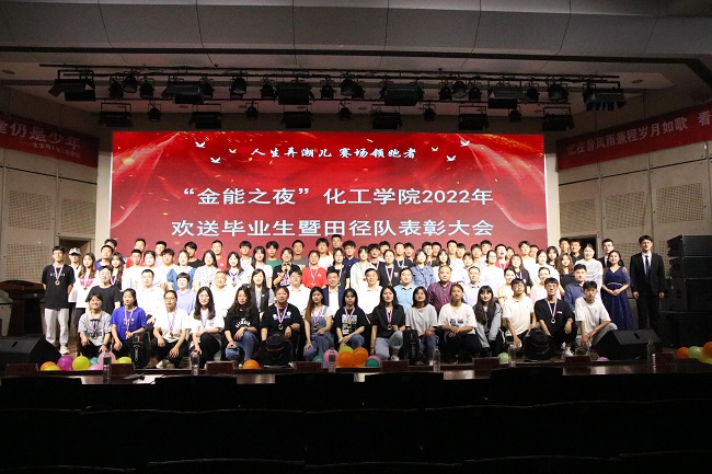 6月12日,澳门信誉最好十大平台在大学生活动中心二楼报告厅举办“金能之夜”2022年欢送毕业生暨田径队表彰大会。金能化学(青岛)公司总经理伊国勇,校研究生院院长韩作振,校团委书记尹立明,体育学院直属党支部书记兼院长田启发,学生处副处长孔环,体育学院副院长杨彤彤,澳门信誉最好十大平台党委书记窦存增,党委副书记兼副院长田静,2016级校友、田径队前任总教练侯琪等出席大会并为获奖人员颁奖,参加大会的还有澳门信誉最好十大平台全体辅导员、各系教师代表、学生代表。