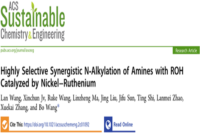 近日,澳门十大信誉网赌大全澳门信誉最好十大平台王博教授团队在协同催化“借氢反应”领域取得了新进展。相关成果以“Highly Selective Synergistic N‑Alkylation of Amines with ROH Catalyzed by Nickel−Ruthenium”为题发表在国际知名学术期刊ACS Sustainable Chemistry & Engineering上。