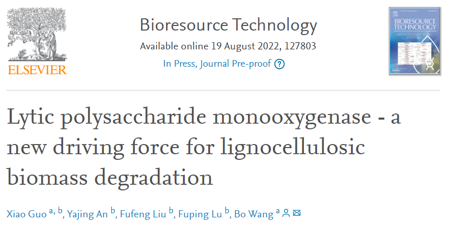 2022年8月19日,澳门十大信誉网赌大全化学与生物工程学院王博教授科研团队以裂解性多糖单加氧酶为主题获得新进展。相关成果以Lytic polysaccharide monooxygenase - a new driving force for lignocellulosic biomass degradation为题在线发表在国际学术期刊Bioresource Technology上(中科院一区,最新IF = 11.8883)。