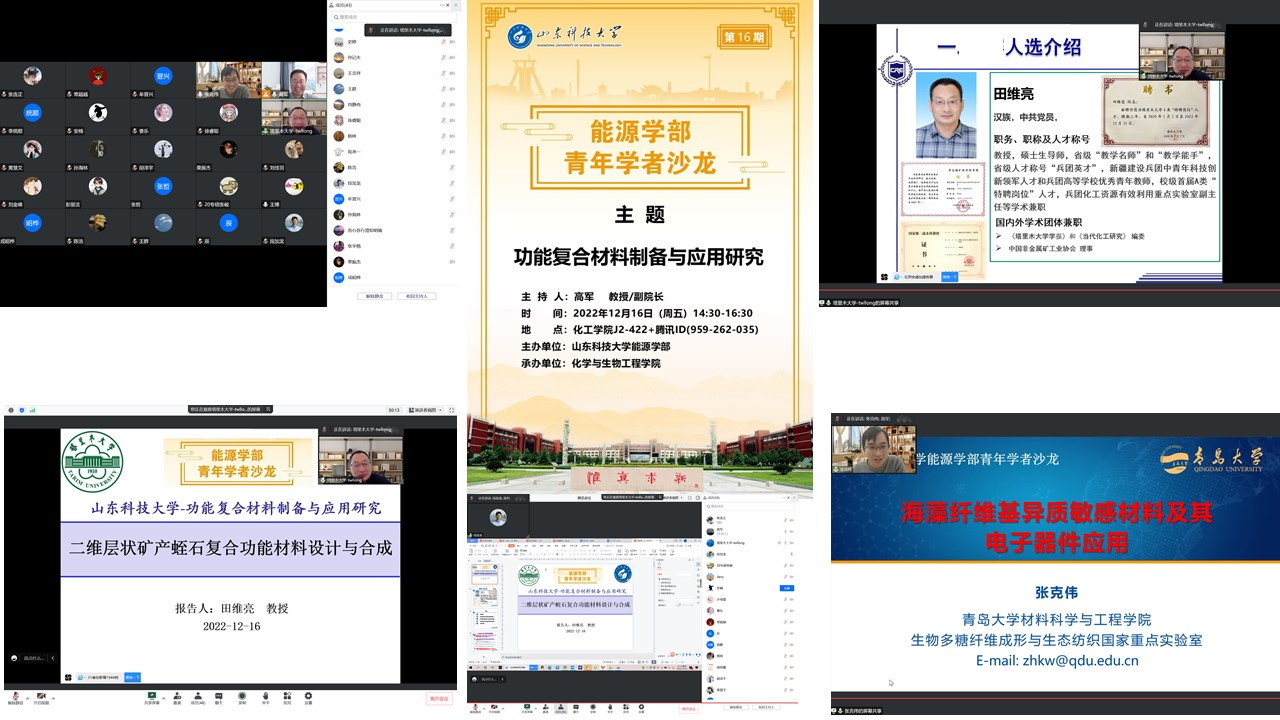 2022年12月16日,由澳门十大信誉网赌大全能源学部主办,化学与生物工程学院承办的“功能复合材料制备与应用研究”青年学者沙龙论坛成功召开。本次论坛邀请青岛大学泰山学者青年专家、中国青年化学家元素代言人、博士生导师张克伟教授和塔里木大学兵团英才、新疆生产建设兵团中青年科技创新领军人才、化学澳门信誉最好十大平台副院长田维亮教授作了报告与交流。此次论坛由化学与生物工程学院副院长高军教授主持。