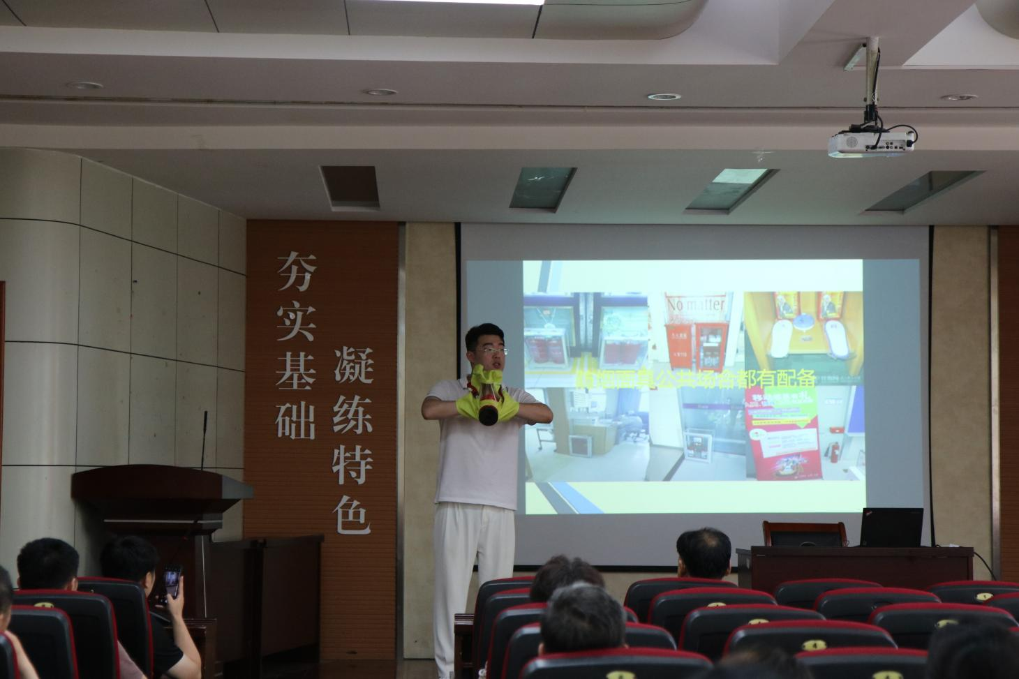 活动伊始,刘教官与师生就“发生火灾后的第一反应”展开讨论,并向师生们普及消防安全知识,大家认真聆听,深刻体会到了消防安全的重要性。随后,他介绍了当今社会引发火灾的最主要原因——电器失火。刘教官结合不同的火灾情形,讲解了正确的应对处置方法,同时警示大家要提高安全隐患意识,防患于未然,并需熟练掌握火场自救的方法。最后,刘教官结合消防工作经历,讲述了自己对消防安全的认识,强调了家中备好灭火器材的重要性,号召大家掌握防火救火基本技能,切莫轻视消防安全。
