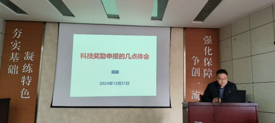 为了深入贯彻和落实习近平总书记关于科技创新的重要讲话精神,推动高水平学科建设,强化有组织科研,促进科研人员了解最新科技奖励政策,提升申报能力,2024年12月31日,澳门信誉最好十大平台在J2-104报告厅组织召开了科技奖励申报专题培训会。学院副院长梁鹏教授、唐群委教授分别作了关于科技奖励申报的专题报告,学院全体教师参加此次培训。会议由学院党委书记窦存增主持。