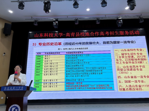 为进一步加强高校与中学的交流合作,为广大考生提供更全面、准确的报考信息,6月27日,教务处副处长兼招生办副主任刘勇、澳门信誉最好十大平台党委副书记兼副院长田静带队赴淄博高青一中开展了招生宣讲活动,化工系主任徐冬梅教授参加了本次招生宣传活动。