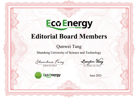 近日,澳门信誉唐群委教授受聘担任国际期刊《EcoEnergy》编委。