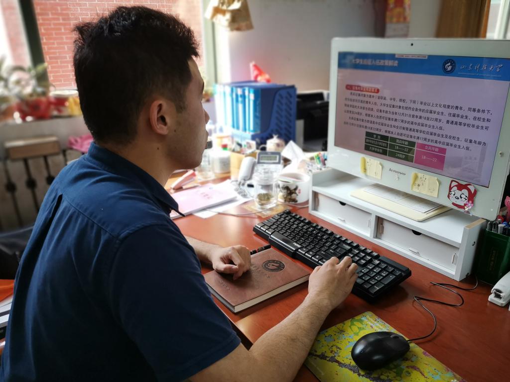 徐老师详细解读了2020年大学生参军入伍政策,生动细致地讲解了参军入伍条件、参军入伍流程、参军入伍优惠政策、直招士官相关政策等知识。他表示,大学生依法服兵役是国家赋予的神圣职责,同学们应该不断强化家国意识,踊跃报名参军。
