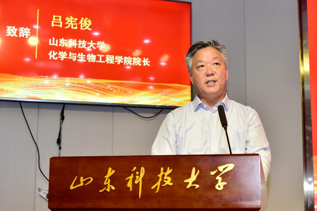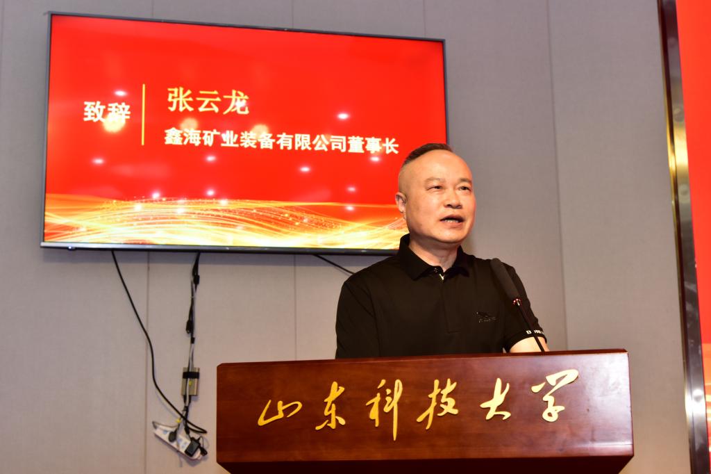 金能化学(青岛)有限公司总经理伊国勇、鑫海矿业装备有限公司董事长张云龙、威海市海王旋流器有限公司董事长孙吉鹏分别致辞。他们介绍了企业发展情况和捐款资助的初心,并对学校一直以来的大力支持表达了感谢,希望同学们坚定信念,树立远大理想,以强烈的紧迫感和执著精神,追求新知、勇攀高峰。