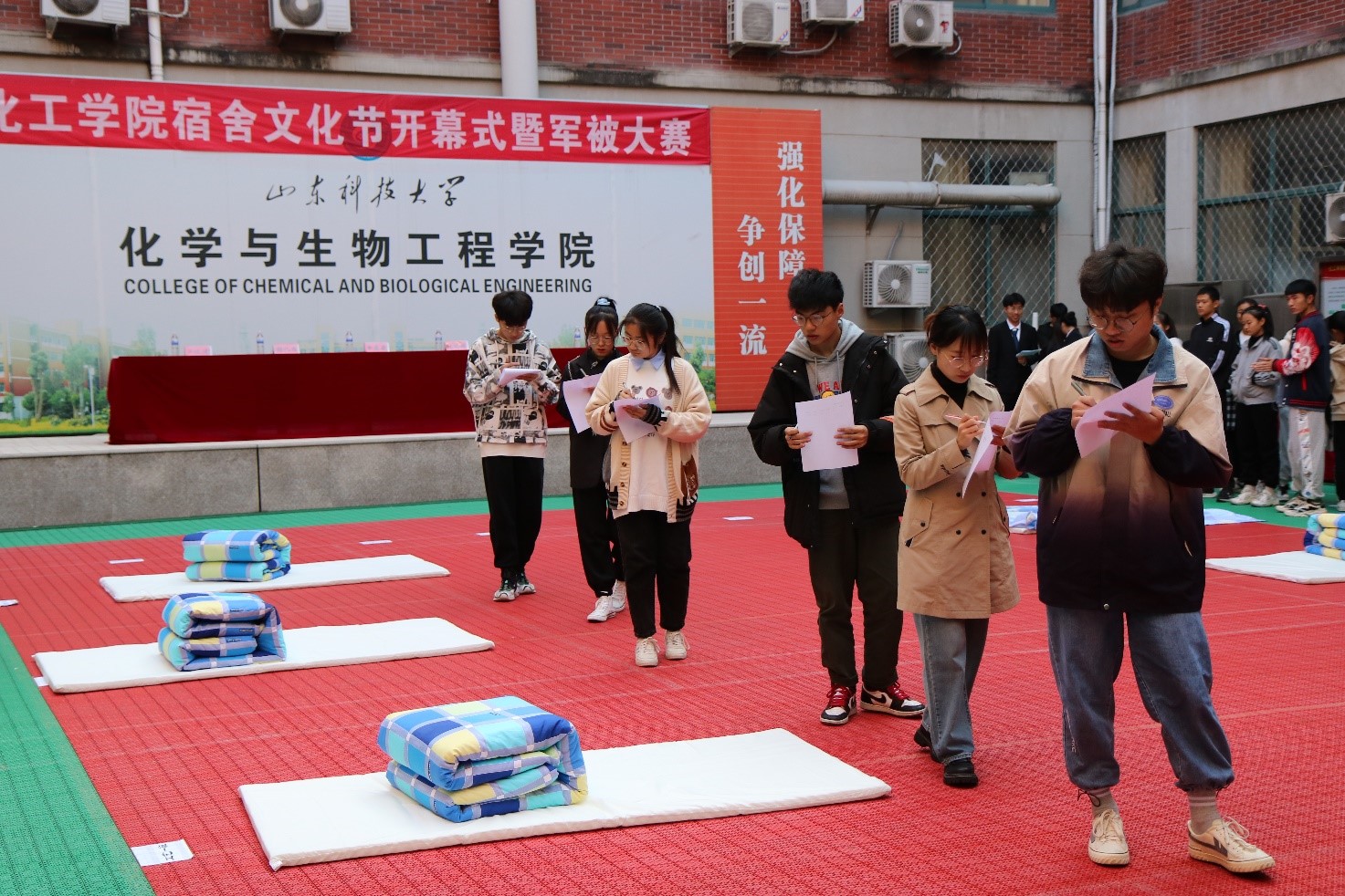 为建设良好的宿舍文明,营造良好的宿舍环境,丰富同学们课余生活,提高同学们的自律意识和自我管理能力,10月23日,由澳门信誉最好十大平台团委主办、自律会承办的宿舍文化节开幕式暨军被大赛在J2文化广场举办。澳门信誉最好十大平台学工办主任(团委书记)易凡、辅导员满灏出席开幕式,院学生会主席刘娟,心健联会长石林源,自律会主任卢冰洁,安全、材料、经管学院自律会负责人出席大赛并担任评委,2021级新生参加此次比赛。