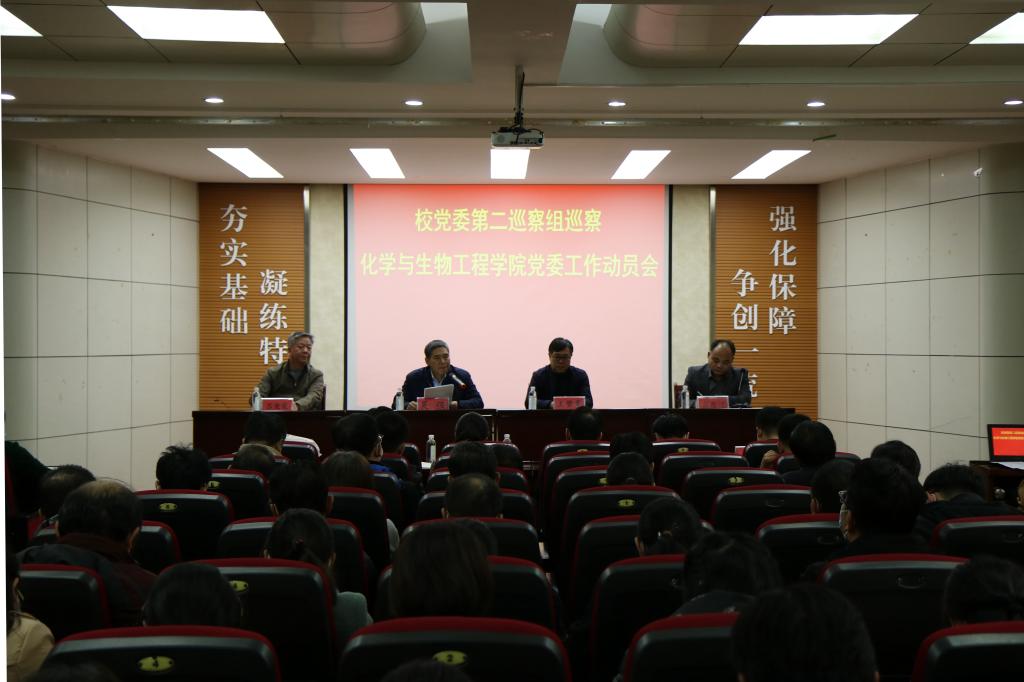 11月2日下午,校党委第二巡察组、意识形态工作专项巡察组巡察化学与生物工程学院党委工作动员会召开。第二巡察组组长吴强作动员讲话,澳门信誉最好十大平台党委书记窦存增主持会议并作表态发言。