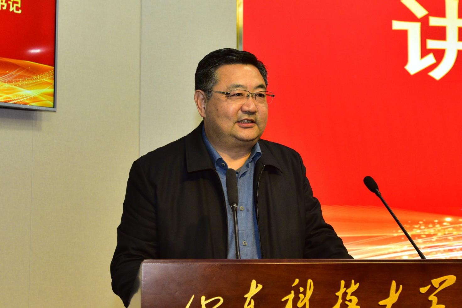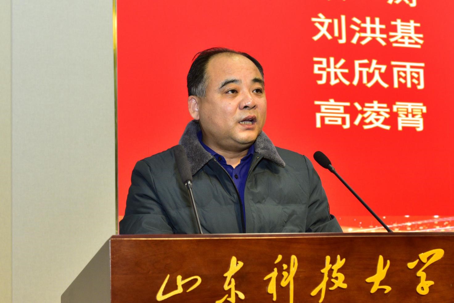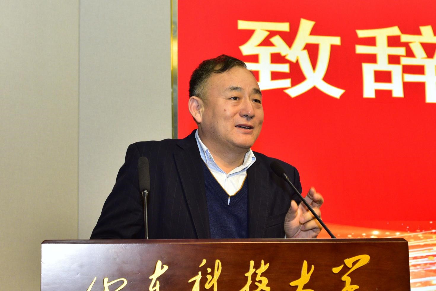 山东祥生新材料科技股份有限公司总经理侯顺祥致辞,他介绍了企业与科大之间的渊源发展和设立奖学金的初心,并分享了三句话与同学们共勉:燕雀安知鸿鹄之志、王侯将相宁有种乎,为中华之崛起而读书,上善若水,希望同学们在心里种下努力的种子,从点滴做起,累积起更大的辉煌。