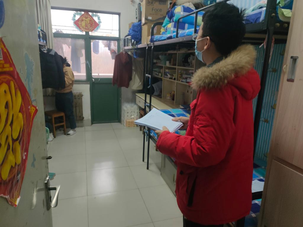 学院辅导员先锋队是这架战机的控制室。3月13日周日,学校下达封闭管理通知后,按照学校要求,辅导员舍小家顾大家,下沉疫情防控工作一线,第一时间连夜入住学生宿舍,全天候值守,与学生同吃同住同学习,同呼吸共命运。学院党委副书记兼副院长田静工作已30个年头,接到工作任务后,没有任何迟疑,带头打起行囊当夜搬入学生宿舍;辅导员王大鹏的儿子刚刚一岁,每天晚上都要伏在爸爸的肩膀上才能入睡,但当接到通知后,纵然妻子亦身在单位抗疫一线,二话没说毅然决然搬进学生宿舍;辅导员徐华坤辞别刚订婚的未婚妻,雷厉风行搬入学生宿舍;辅导员满灏克服身体不适,紧急打包迅速搬进学生宿舍。自此,由田静率队,辅导员王大鹏、徐华坤、满灏组成的“先锋队”,齐心协力,密切配合,奋战在抗疫的第一线。