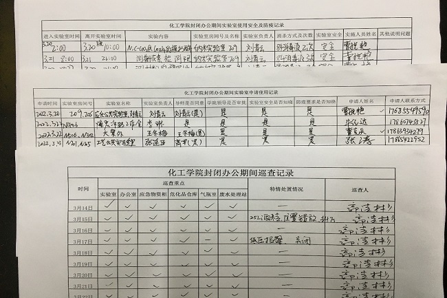 自封闭办公以来,澳门信誉最好十大平台书记、院长和实验室主任一直坚守在教学区办公。根据学校规定及师生需求,制定了实验室临时使用审批制度、实验室安全使用及防疫登记制度、办公区域、实验室及重点危险源日检制度等;保证线上教学有序进行,做到学生紧迫学业或科研任务不耽误,教职工需求能够及时得到满足;确保实验室安全运行和防疫措施落实到位;抓牢安全运行,不断完善实验室管理,落实落细常态化疫情防控举措,构筑校园安全严密防线,全力保障师生安全。