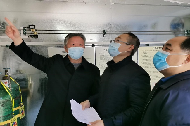 2022年4月1日,澳门信誉最好十大平台开展实验室安全与防疫管理工作巡检。学院党委书记窦存增、院长吕宪俊、实验中心主任郭清彬和辅导员王大鹏参加了巡检。