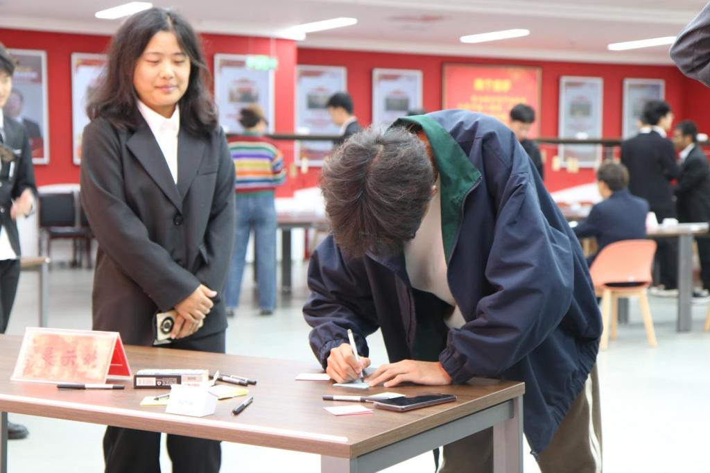 新颖的活动形式、精彩的活动内容,吸引了一批又一批的学生纷至沓来。活动中,同学们抒写自己最喜欢的一本书中的话语、随机抽取并解答书签谜题、参与盲盒抽奖,获得书籍、钥匙扣和校徽等“知识的馈赠”。以书籍为伴,与同学为伍,与校友“对话”,愉快地畅游在知识的海洋里。