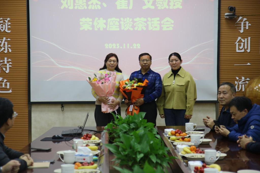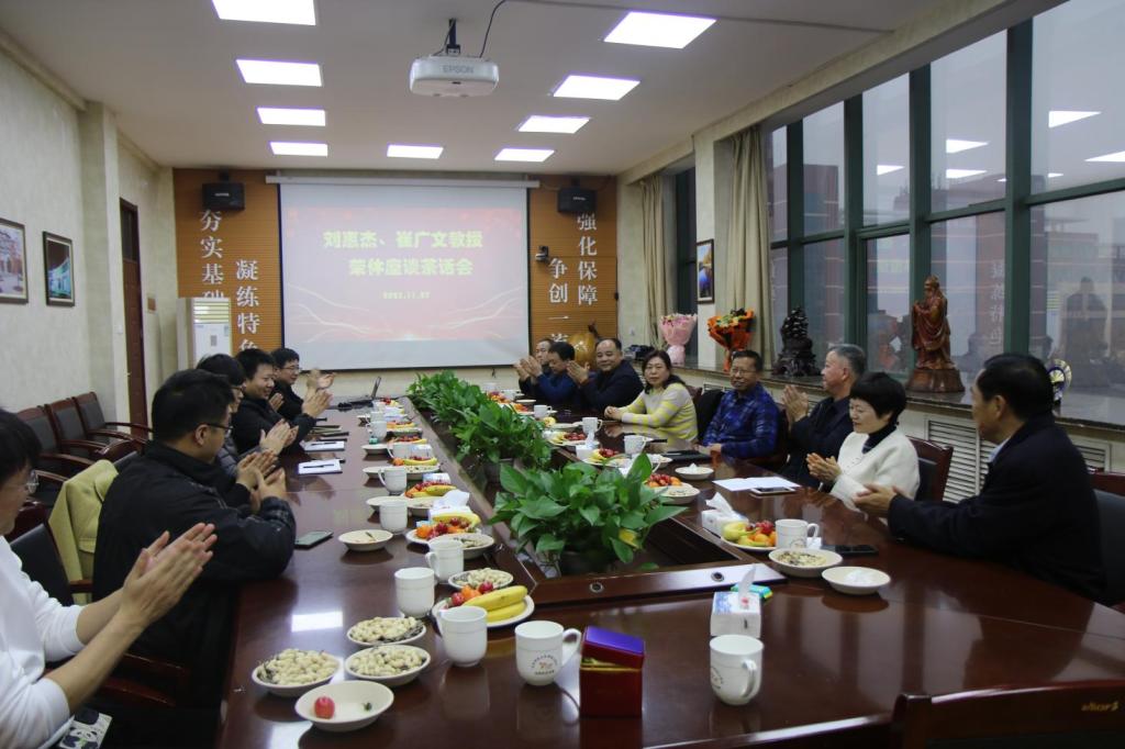 11月27日下午,澳门信誉最好十大平台举办刘惠杰、崔广文教授夫妇荣休座谈茶话会,学院党委书记窦存增,院长吕宪俊,党委副书记兼副院长、院工会主席田静及学院教师代表参加座谈会,会议由田静主持。