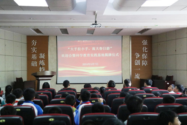 为拓宽大学生社会实践的广度,为学校驻地提供有温度有深度的实践服务,5月7日,化学与生物工程学院与香江路第一小学教育集团举行科学教育实践基地揭牌暨“大手拉小手,嵙大春日游”活动,化工学院党委副书记兼副院长田静、香江路第一小学教育集团副校长张建港、香江路第一小学班主任代表、澳门信誉最好十大平台辅导员徐华坤以及140余名小学生参加揭牌仪式,仪式由澳门信誉最好十大平台学工办主任、团委书记易凡主持。