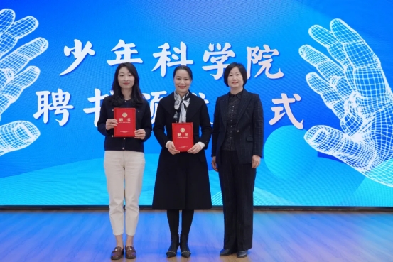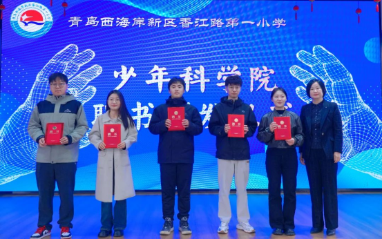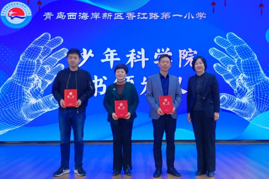 揭牌仪式上,田静、徐华坤被聘为少年科学院校外专家顾问,易凡被聘为少年科学院副院长,曹龙伟、于一飞、张冬晴、彭善凯、杨书凯等五位研究生被聘为少年科学院助理教师。香江路第一小学教育集团校长、少年科学院院长丁海燕向受聘人员颁发聘书。