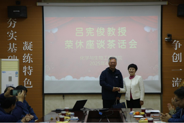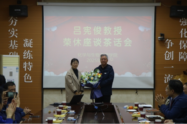 窦存增、田静分别向吕宪俊赠送纪念品,青年教师代表柳晓向吕宪俊献上了鲜花。