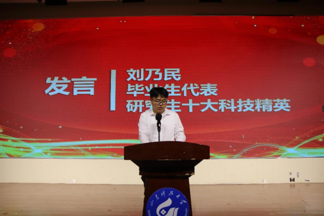 毕业生代表刘乃民和王奕苏发表获奖感言与经验分享。