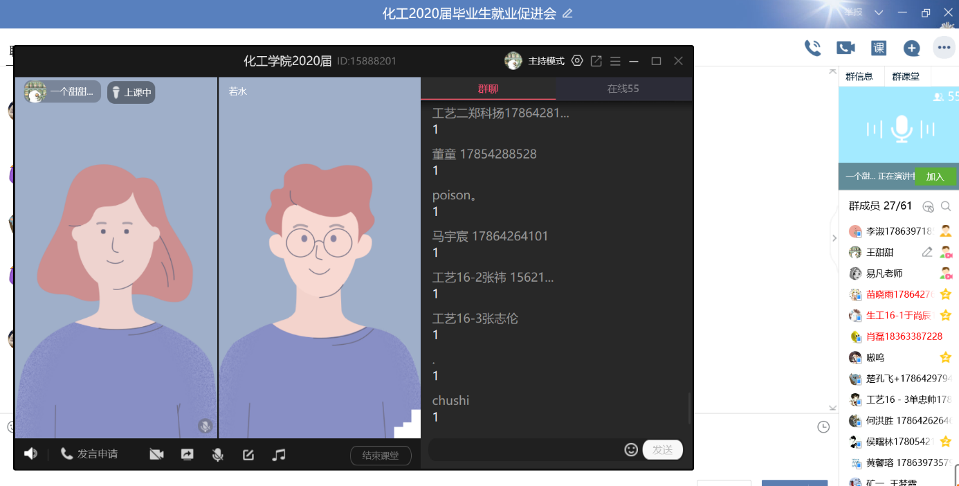 易凡运用近年来的数据,向未签约毕业生详细说明了疫情情况下就业形势的严峻性,强调了用人单位受新冠疫情及经济形势下行的影响,出现了招聘晚、招聘少的特点;深入剖析了就业政策,梳理了就业流程和注意事项;结合往年就业工作的经验,给出了有效的建议和方法,鼓励未签约毕业生要充分利用毕业前的时间参加校园空中招聘,树立正确的就业、择业观念,做到“认清形势,积极就业”;同时,提醒所有准备二战考研的同学,在认真复习备考的同时,积极寻找合适的就业机会。