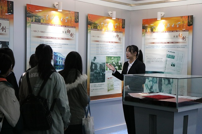 参观过程中,讲解员结合校史馆丰富的图文和珍贵的实物,向同学们介绍了学校的办学理念、发展历程、精神内涵和事业追求,带领同学们依次参观了“殷切关怀”、“学校领导”、“鸿基初创”、“艰难前行”等八个展厅。一张张照片、一块块展板,见证了学校建校以来的发展历程和变化。同学们徜徉在生动的讲解中,浏览着记录我校几十年来风雨历程的各种奖杯、奖状和纪念品,回顾着科大人筚路蓝缕、殚精竭虑的建校与发展历程,感受科大校园的沧海桑田、历史变迁,感受科大积淀深厚的文化底蕴,催生出强烈的历史厚重感和奋进拼搏的动力。