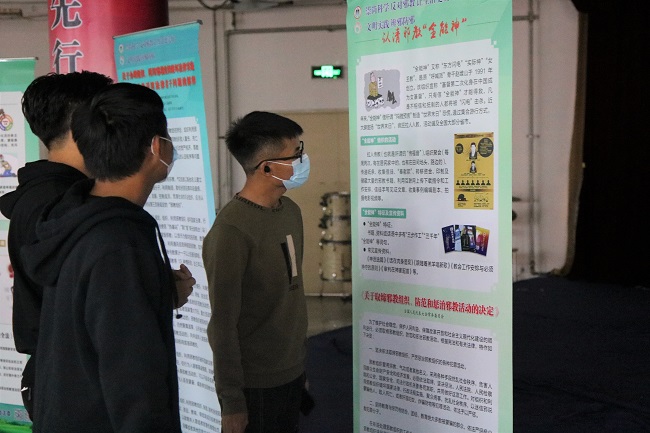 参观过程中,同学们观看大量生动详实的图文展板,从认清邪教、遇到邪教怎么办、邪教的骗人手法、邪教与宗教、透视邪教、邪教案例警示等多个角度认识和了解邪教的本质与危害,充分认清了邪教组织反社会、反科学、反人类的丑恶本质,深切认识到邪教对社会、对个人造成的严重危害。同学们边听、边看、边议,认真阅读着展板上的文字图片,并不时用手机拍摄展板内容。