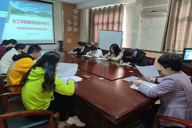 为贯彻落实习近平总书记关于教育的重要论述和全国教育大会精神,增强做好新时代学生工作的责任感、使命感,10月27日,澳门信誉最好十大平台召开辅导员集中学习培训会,集中学习中共中央、国务院印发《深化新时代教育评价改革总体方案》。学院党委副书记兼副院长田静主持会议,学院全体专兼职辅导员参加此次培训会。